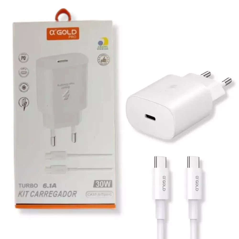 CARREGADOR TURBO TIPO C 30W CA37-3 COM CABO TIPO C GOLD PRO CA37-3